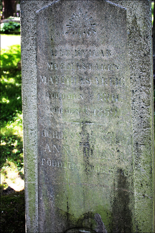 Matts Artig kuoli 6.9.1859 ja vaimonsa Anna Helena 18.2.1876.